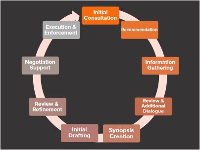 E. Synopsis Creation : A concise preliminary outline or synopsis of the proposed agreement is crafted, which is then shared with you for preliminary approval.